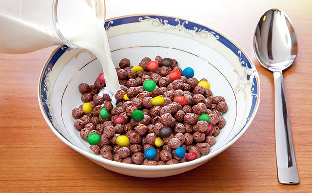 - Калорийная, но невероятно вкусная бомба из сухих злаковых шариков, сгущенного молока и драже M&M’s. Незамысловато, но по-настоящему аппетитно.