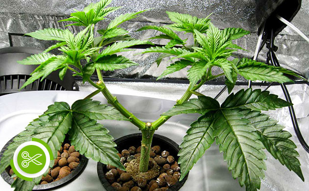 Чтобы решить эту проблему с освещением, гроверы годами разрабатывали разнообразные техники формирования кроны конопли. Они не просто делают куст более компактным и ветвистым, но и позволяют добиться максимальной урожайности с единицы площади. Данные техники тренировок подтвердили свою эффективность при искусственном освещении. Однако важным условием успешного результата являются правильный подход и последовательность при формировании кроны куста. Выполняя подгиб или обрезку, начинающий гровер может легко перестараться с тренировками, что причинит растению лишний стресс. Здоровые растения каннабиса, конечно же, смогут оправиться после неумелого обращения, но на это уйдет время, а конечная урожайность может и повысится, но не так сильно, как могла бы.