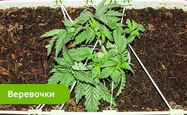 Данная техника повышения урожайности не требует покупки дорогостоящего оборудования, удобрений или стимуляторов. Все, что требуется от гровера, – это наличие свободного времени и правильное выполнение подгиба. Для фиксации стебля могут использоваться изолента, шнурки или мягкие веревочки, которыми ветви прикрепляются через отверстия к краям горшка. Кто-то отдает предпочтение скобам, которые обратной стороной углубляются в грунт, кто-то берет на вооружение плотную проволоку в мягкой оплетке.