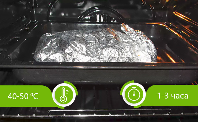 Бумагу складывают в несколько слоев, укладывают на нее соцветия и сворачивают конвертом. Далее этот сверток необходимо завернуть в один слой фольги таким образом, чтобы внутрь попадало небольшое количество воздуха. Готовую конструкцию нужно поместить в место, где температура воздуха будет в пределах 40-50 градусов по Цельсию. Это может быть духовой шкаф, включенный на минимальный обогрев, теплая батарея или любая другая подходящая среда. Некоторые гроверы, которые используют для освещения гроубокса ДНаТ светильники, приловчились укладывать этот сверток на поверхность плафона.
