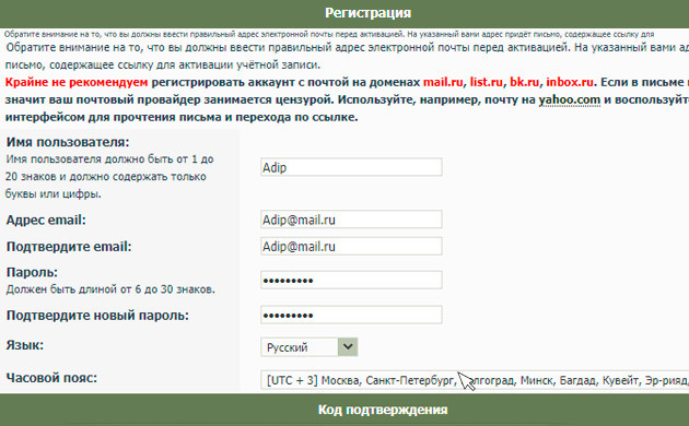 Регистрация на сайте