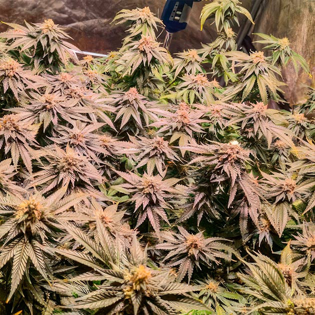 Растения входят в финальный этап цветения. Соцветия небольшие, смолистые и плотные. Большинство стигм стало оранжевыми. Снизил влажность до 55 %, а ppm раствора до 1000: