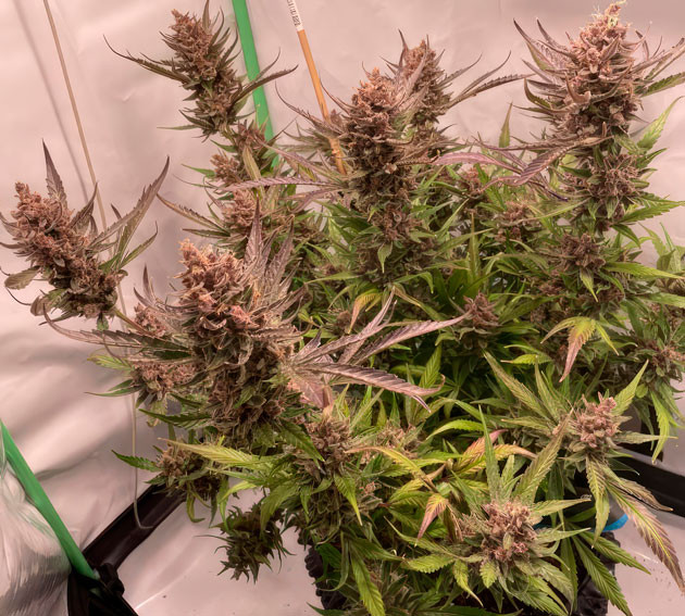 Цветение в полном разгаре. Рост полностью остановился, зато бутоны толстеют и обрастают смолой все сильнее. На этой неделе я уменьшил количество удобрений, так как дренаж по значению pH был слишком низким, а по ЕС слишком высоким. EC у меня был около 4,0.