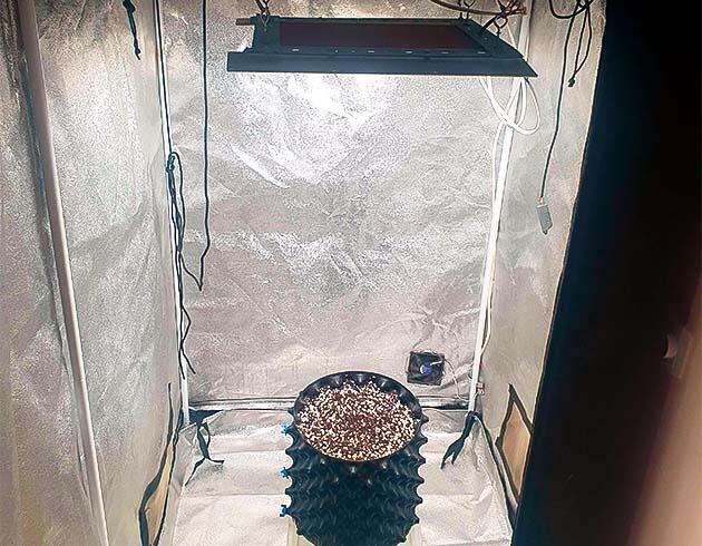 Свет на эту неделю будет 23000 lx, ~ 440 ppfd. Работает один борд 120 Вт. Красные диоды (660 nm) пока не подключаю. На 13-й день досыпал кокос в горшок и сделал полив 3 л аналогичного компота.