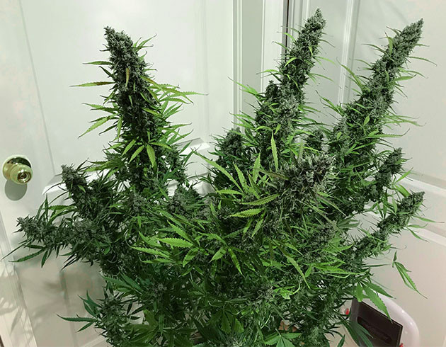 Отчет о харвесте по итогам рубки и просушки всех четырех кустов. Полный жизненный цикл Green Crack Auto составил 84 дня как для первых двух кустов, так и для вторых. В обоих случаях особых трудностей или проблем в грове не возникло. Генетика очень хорошая, развитие на 5+. Одна растишка пережила перелом и без проблем продолжила расти, другая ни с того ни с сего пожелтела, но особо от этого не замедлилась и в конечном итоге не уступала ни в размере, ни в количестве урожая. Больше всего меня впечатлил размер самих растений, и соцветий в частности. Ветки покрываются шишками почти сплошняком, незанятого пространства минимум. Шишки плотные и очень смолистые. Аромат как свежих цветущих растений, так и высушенного продукта очень приятный. Фруктовая цитрусовая палитра с выраженным грейпфрутовым оттенком, очень свежая и насыщенная. С четырех кустов я собрал 503 грамма урожая. Подсчитав окончательно количество шишек, я был приятно удивлен. Я рассчитывал на 100 грамм с куста в лучшем случае, а получил больше.