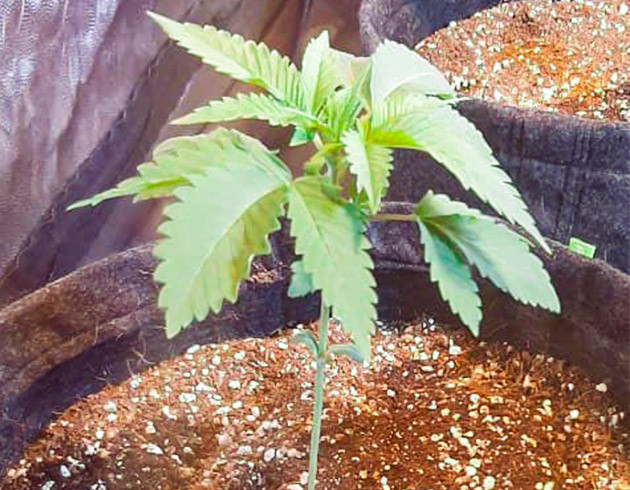 На третий день посадки, когда растишка уже набирала силы, к большому сожалению, из-за скачка электричества у меня перегорела ЭмПРА. И я остался только с одной лампой ДНаТ 400 Вт. Новая ЭмПРА шла до меня неделю, тем временем я попытался компенсировать недостаток света лампой LED 200 Вт. Полагаю, из-за этого рост растения замедлился. В дополнение к этому я начал кормить растение с первого дня (опрыскивал почву половинной дозой Plagron A+B cocos от рекомендованной производителем), и, скорее всего, это привело к искривлению листа.