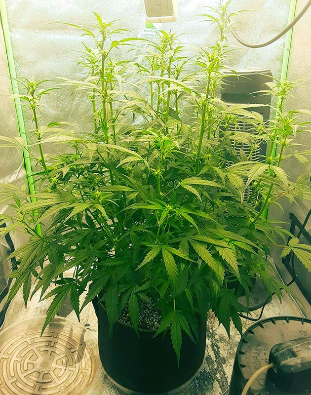 Немного поразмыслив, решил оставить LST еще на неделю, чтобы ветки тянулись более разобщенно, подальше друг от друга. Так и произошло. Девочка сильно выстрелила в рост и набрала 15 сантиметров всего за неделю. Она начала много пить, при поливе по 2 литра в сутки почва просыхает на две фаланги уже к следующему дню. Начал давать подкормку каждый третий полив: