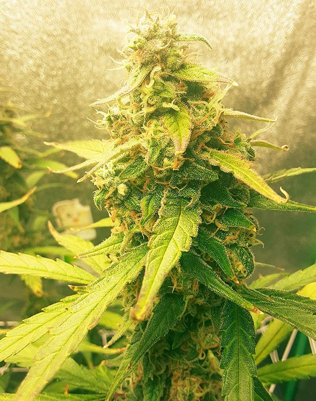 На десятой неделе решил больше не давать удобрения и продолжить промывку, ppm на дренаже постепенно падает. Шишки набухают, начинают появляться первые мутные трихомы и коричневые волоски. К концу недели шишки окрасились огнём от оранжевых волосков, сахарные листики начали также немного коричневеть по краям.