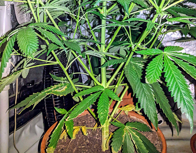 На третьей неделе я заметил, что листья недостаточно зеленые. По крайней мере, не такие зеленые, какие я получал обычно к этому этапу развития. Несмотря на это, растения выглядели отлично. Темп их роста меня вполне устраивал, на каждом из них сформировалось от трёх до четырех полноценных этажей. На данном этапе условия в палатке были такие: