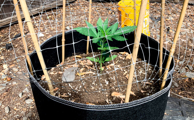 Сетка над ростком каннабиса