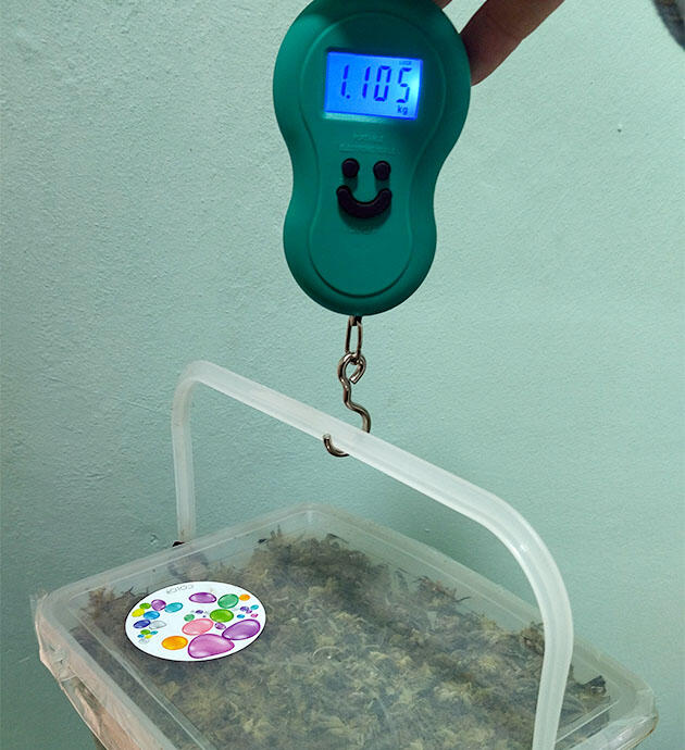 В итоге Старший Кэп влез в девятилитровое ведро. Общий вес 1105 граммов минус тара 315 граммов. Выходит 790 граммов чистого сухого веса!