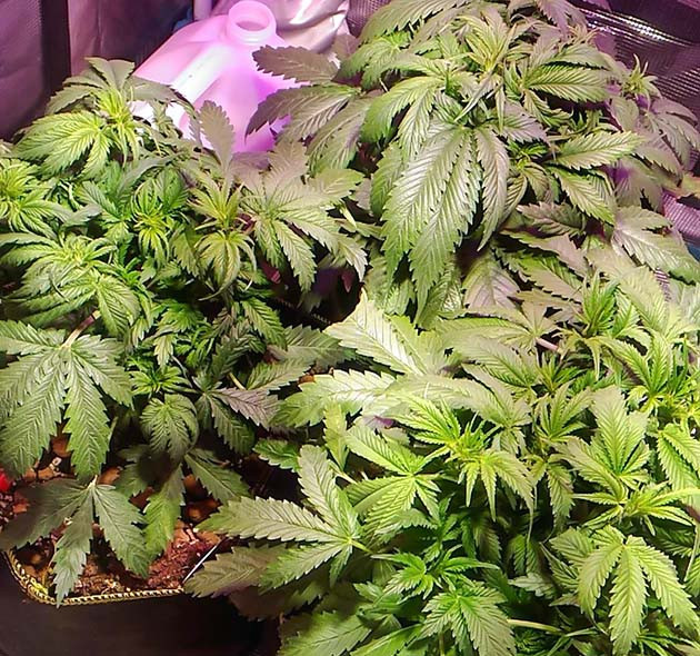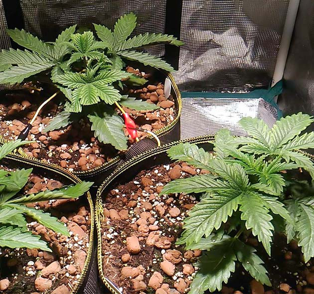 На третьей неделе начал аккуратно гнуть кустики по технике LST на тех ветках, которые вытягивались сильнее остальных. Растения развиваются отлично и уже начали пахнуть. Изменил схему питания: