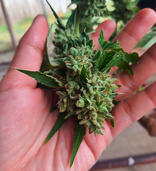 В итоге я получил немногим больше 300 граммов сухого урожая. Тримил нещадно, лишнее выбрасывал, а вот попкорна почти и не было. Шишек на кустах получилось не то чтобы много, но опять-таки, учитывая все переменные, я более чем доволен. Аромат у высушенных, но еще не пролеченных бошек кисло-сладкий, без травянистости, приятный, мягкий и свежий. Эффект понравится любителям «бодрой» конопли. Самое то, чтобы заниматься чем-то, хоть монотонной работой, хоть чем-то более творческим. Сильного расслабления не почувствовал, приятный мягкий релакс, если отвлечься от дел и задуматься.