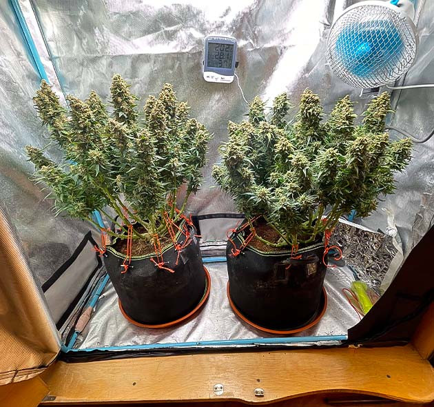 На 14-й неделе сильно ухудшилась погода, шли дожди и стоял туман. Из-за этого сильно поднялась влажность и на одной из кол появилась плесень. Хорошо, что я быстро её обнаружил и удалил. Понизил влажность в боксе до минимума, которого смог добиться, до 40 %. Похоже, этим я спас весь свой урожай, так как дождливая погода продолжалась и влажность зашкаливала. В конце недели начал готовиться к харвесту, то есть промывать растихи.