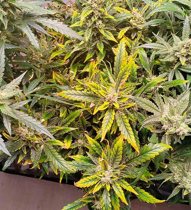 В конце недели словил засол. Вход-выход меряю каждый раз. В общем, заметил сразу, пытаюсь промыть. Горшки по 15 литров – это, конечно, была моя ошибка, необоснованно много для автиков. Вода покупная, поэтому её катастрофически не хватает, как и времени. Сбил до 800 ppm, на выходных выравняю полностью.