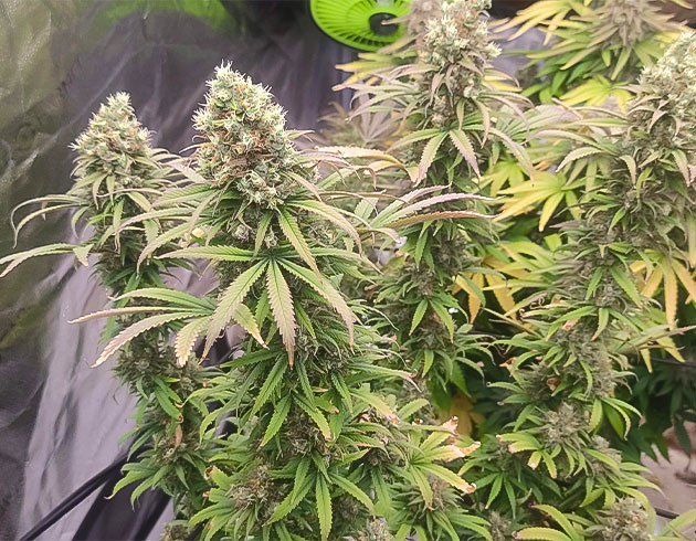 Итак, замороженная семка Gorilla от «Семяныча» дала урожай за 16 недель. Исходя из моего опыта, это самый обыкновенный срок для фотопериодного сорта. Да, бывают растихи быстрее, бывают и медленней. В среднем я закладываю на полноценный гров куста 4 месяца, как и получилось в случае с «Гориллой». Каких-то задержек, мутаций, проблем в развитии я не заметил. Гров прошёл без каких-либо проблем, я особо и не ухаживал за кустом, стандартные процедуры: полив, подкормка, лёгкое LST на веге и ScrOG во время цветения. Некоторые листики подгорали то ли от дефицита, то ли от перекорма, но общее состояние и темп развития куста не давали причин для беспокойства. В конечном итоге я получил растиху с большими, крупными колами и собрал солидный урожай. После рубки, тщательного маникюринга и удаления всего лишнего сушка заняла неделю в контролируемых условиях (температура 20-22 °C, влажность 60 %). После этого урожай взвесил и отправил на пролечку. Итоговый результат – 163 грамма готового продукта.