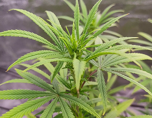 Заключительная неделя веги, восьмая, принесла заметный рост. Куст вытянулся на 25 сантиметров, все ветки длинные, между этажами получились довольно длинные междоузлия. Листва тонкая, сативная. На этой неделе перестал давать More Roots, оставил в компоте только Organic Grow Liquid и Fast Buds. Поливал два раза в начале недели, затем дал просохнуть и пересадил куст в горшок на 18 литров.