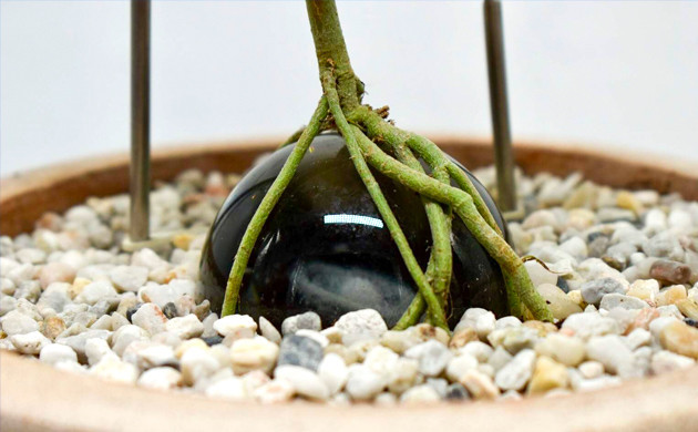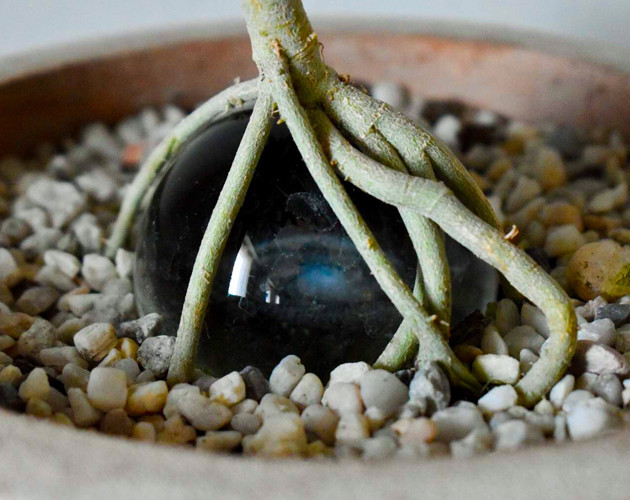 На седьмой неделе я убрал верхний керамический сосуд, в котором лежала стеклянная сфера. Как я и ожидал, корни обросли сферу и были достаточно крепкими для дальнейшего развития.