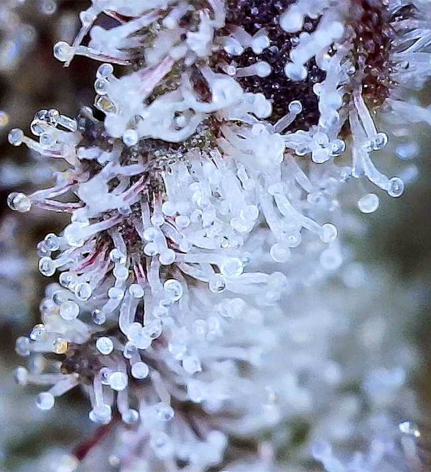 Заметьте, какие крупные трихомы окружают соцветия! Достаточно непривычное зрелище для начала третьей недели цветения.