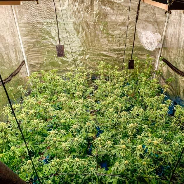 Сейчас у нас 10-й день цветения. Перед моими глазами чистое наслаждение. Работа со скрогом завершена, все веточки на своих местах, а верхушки выстроились в равномерный плотный зеленый ковер. Выбивается только тот самый необрезанный мутант, который отставал и не был как следует потренирован, но и он не в силах испортить мое удовлетворение.