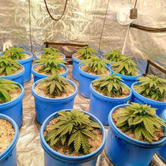 На этой неделе я увеличил Bio Bloom до 2 мл/л и начал поднимать частоту поливов, так как из-за быстрого роста и легкого субстрата с высоким процентом перлита влага очень быстро покидает корневую зону. Если в начале можно было по 7-10 дней держать горшки без полива, то сейчас уже через 3-4 дня горшки сухие и нужно в любом случае давать воду. Причем, по мере роста кустов, этот промежуток будет только укорачиваться, но именно легкость и воздухопроницаемость субстрата позволяют корням легко разрастаться и активно поглощать питание.