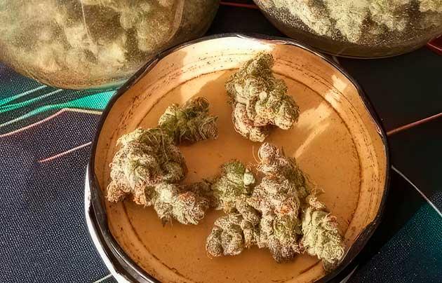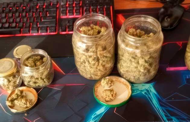 Все четыре растения продемонстрировали разные фенотипы. Результаты вы можете видеть на фото. Там каждый куст разложен в свои баночки. Первый был одним из самых плодовитых, стойких и смолистых, но у него умеренный аромат земли и дерева. Второй и третий фенотипы самые вкусные, хоть урожай у них достаточно скромный. В отличие от других они классно пахнут фруктами, лишь с небольшой примесью землистости. Четвертый фенотип имел самые рыхлые шишки и более деликатный аромат.
