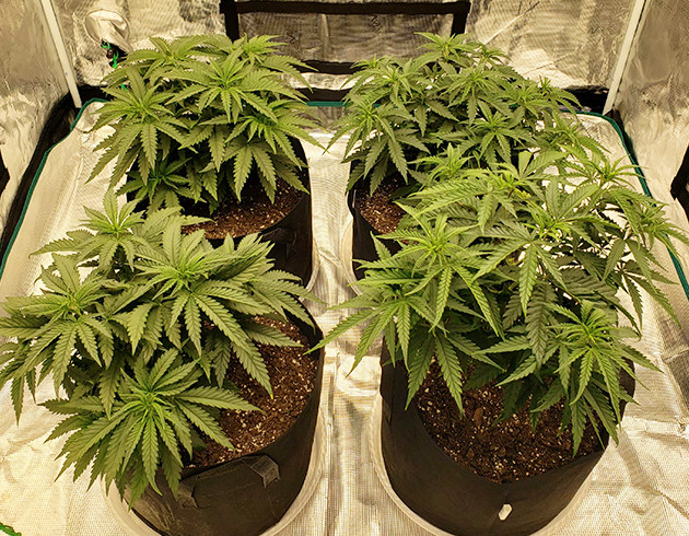 На четвертой неделе сделал топпинг и сразу растянул ветки в стороны. Мутанту пришлось делать два топпинга, у него ведь две макушки. Растишки быстро восстановились и продолжили активно развиваться. Пока всем доволен, никаких проблем.
