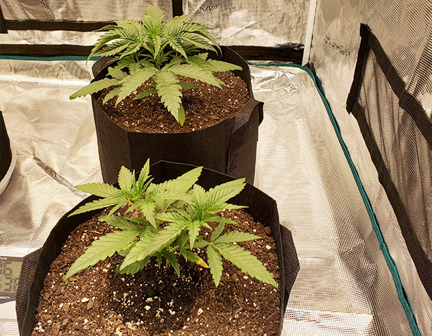Растения немного пострадали от теплового/светового стресса. В это время в наших краях поднялась температура, отчего им стало жарковато. Поливаю в прежнем темпе по той же схеме. Никаких признаков дефицита или переизбытка, паразитов или болезней, девочки развиваются отлично. Стресс особо не замедлил их рост, возможно, потому что был быстро устранен. Я поставил в бокс вентилятор для обдува и немного поднял лампы.