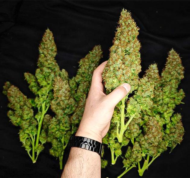 Несколько часов усердного мокрого тримма, и на весах у меня очутилось 1,285 кг огроменных и плотных, как камень, шишек. Повторное сухое взвешивание было через неделю. Во время сушки в темноте при 20 градусах Цельсия и 50 % влажности бутоны нехило потеряли в весе, и в сухом остатке я получил 255 граммов конечного продукта, который теперь бережно доводится до ума в банках с пакетиками Boveda.