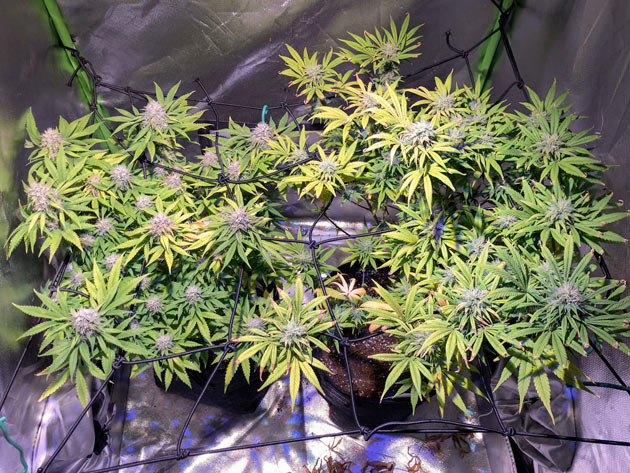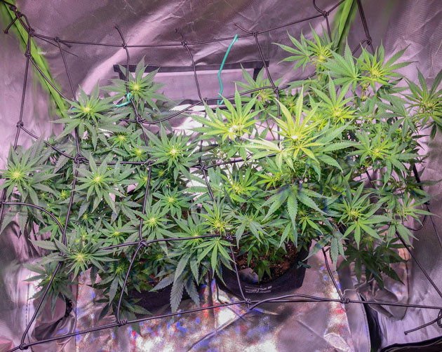 Харвест потихоньку приближается, а мне почти удалось устранить проблему, связанную с дефицитом питательных веществ. Растишка перестала увеличиваться в размерах и, по всей видимости, полностью сконцентрировалась на шишках. Долгий подбор удобрений в конечном итоге привел меня к вот такой комбинации: