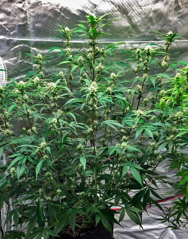 Цветение проходит замечательно! Никаких признаков стресса не наблюдается, хотя я неоднократно прибегал к дефолиации. К концу 10-й недели рост куста составляет 86 с лишним сантиметров. Как я и думал, с каждой неделей аромат усиливается, и сейчас он уже достаточно сильный, чтобы оценить отличную работу угольного фильтра.