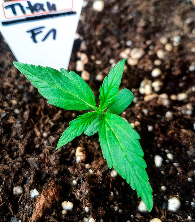 Начало выращивания для Titan F1 Auto было не из самых лёгких. Я решил проращивать семена в начале сезона, когда температура ночами опускалась до 5-10 °C и только днём было теплее. Погода, как всегда, оказалась непредсказуема, и такие условия испортили все мои планы. Однако, как только семена были замочены и появились первые корешки, я высадил их в 15-литровые тканевые горшки, наполненные грунтом «Терра Прета». С нетерпением ждал результатов, поставив их у себя в комнате на подоконнике до установления благоприятной круглосуточной температуры. Для досвета использовал обычную LED-лампу полного спектра на 150 ватт. Световой режим установил 13 часов света и 11 часов темноты. Этого было достаточно для того, чтобы растения начали развиваться, хотя и не слишком быстро.