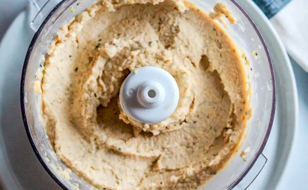 Слегка остывший нут необходимо избавить от оболочки (она может испортить текстуру готового блюда, сделав его не таким нежным и однородным), добавить лимонный сок, чеснок (измельченный), соль, тахини, оливковое масло и немного воды. Все перетирается в блендере, а вода добавляется по мере необходимости для регулирования консистенции.