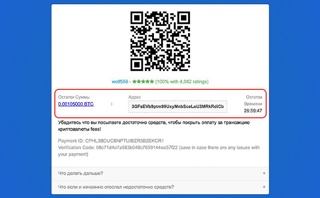 Процесс оплаты биткоинами заключается в переводе btc с кошелька на кошелек. Выбирая оплату биткоинами на «Семяныче», вы получаете наш кошелек, на который необходимо перевести указанную сумму в btc. После этого ваша транзакция должна быть подтверждена в сети биткоин, что не требует от вас никаких действий. Спустя некоторое время ваш платеж получит подтверждение и будет считаться совершенным.
