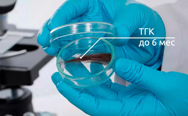 • Волосах. Обнаружить метаболиты ТГК в них можно в течение полугода.