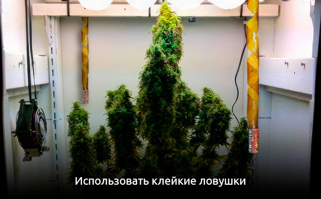 • Используйте клейкие ловушки. Их можно развесить как вокруг гроубокса, так и внутри, да и в ауте несколько липких ленточек рядом с кустом точно не навредит.