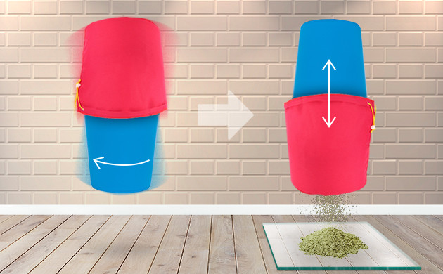 - Встряхните пакет над чистой плоской поверхностью, чтобы трихомы просеились через сетчатую часть. Продолжайте трясти, пока они не перестанут выпадать.