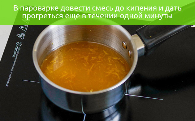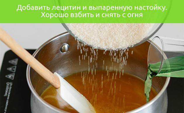 4. В отдельной емкости доведите до кипения остатки сока и влейте в него желе, интенсивно перемешивая. Когда желатин полностью растворится, плиту можно выключить, а само желе смешать с настойкой и лецитином, продолжая взбивать.