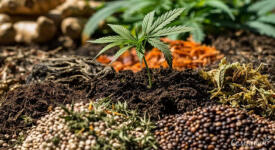 Азот является важнейшим питательным макроэлементом, который так или иначе принимает участие практически во всех жизнеобеспечивающих процессах растения. Именно он составляет основу питания конопли на стадии вегетации и уже в чуть более умеренных количествах поглощается во время цветения.