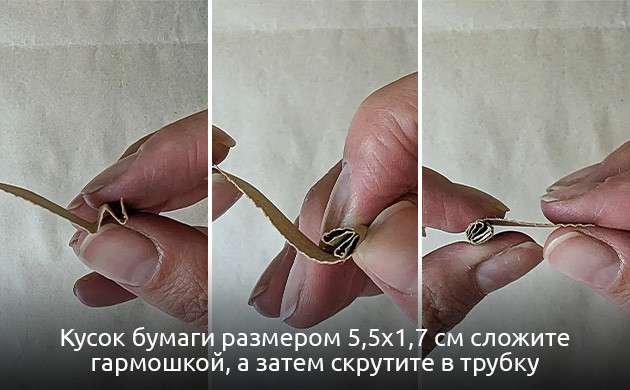 Повторяем те же действия, что и в первом пункте, только начинаем скручивать с одного из концов бумаги. В процессе нужно убедиться, что бумага оборачивается именно вокруг себя, а не просто ерзает туда-сюда и рвется.