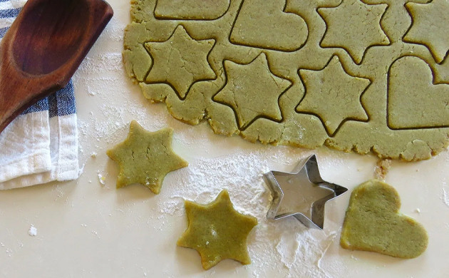 Раскатываем полученную смесь на противне и разрезаем на отдельные печенья. Можно нарезать «колбаской» или сделать их в форме звездочки. Тут уж как кому больше нравится.
