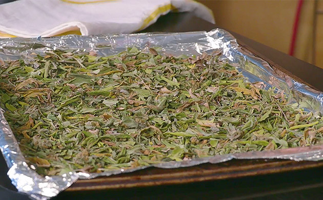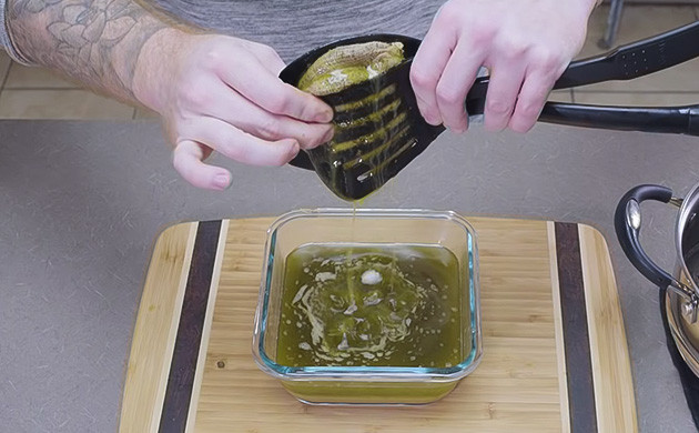 Первое, что вам понадобится, – это хорошенько высушить имеющиеся листья. Можно ускорить данный процесс и просушить листья в духовке, разложив их тонким слоем на противне и оставив на 20 минут при 110 градусах. Высушенные листья следует тщательно измельчить, залить спиртом и плотно закрыть емкость крышкой. Каннабиноиды отлично растворяются в этаноле, и чем выше будет процент спирта, тем быстрее пройдет процесс экстракции. Кто-то утверждает, что достаточно нескольких часов, другие же предпочитают подержать листья в таком виде примерно неделю. Если встряхнуть емкость, то на ее поверхности должны образоваться пузыри с радужными масляными разводами. Далее содержимое процеживают, чтобы избавиться от растительных остатков, а емкость с экстрактом отправляют на водяную баню. Испарять концентрат на открытом огне крайне опасно из-за присутствия спирта в составе. Есть еще более медленный, но минимально трудозатратный вариант: просто оставить банку с экстрактом открытой и ждать, пока спирт испарится естественным образом.