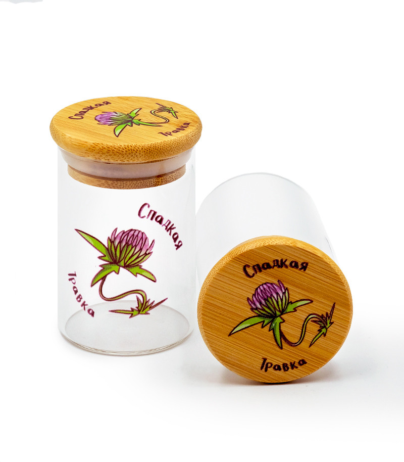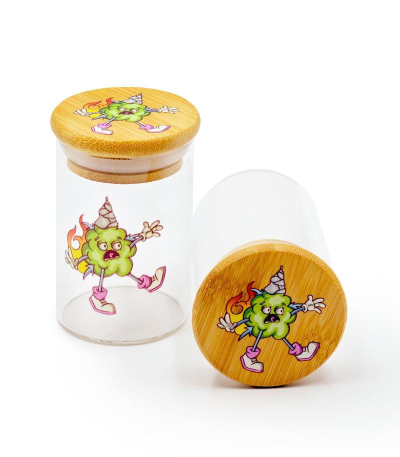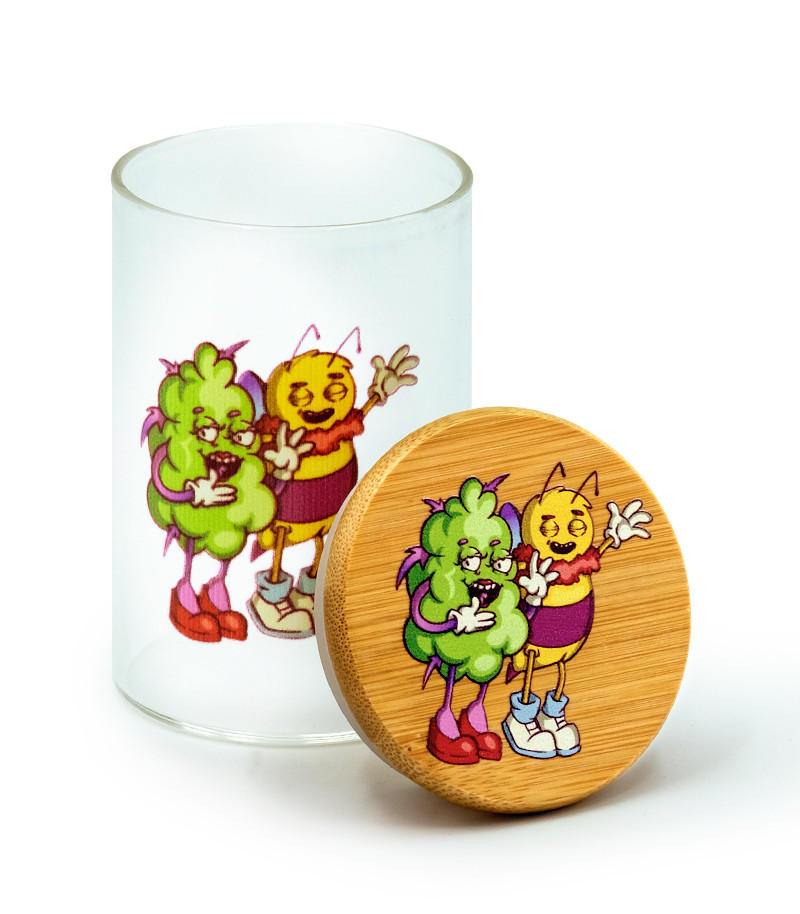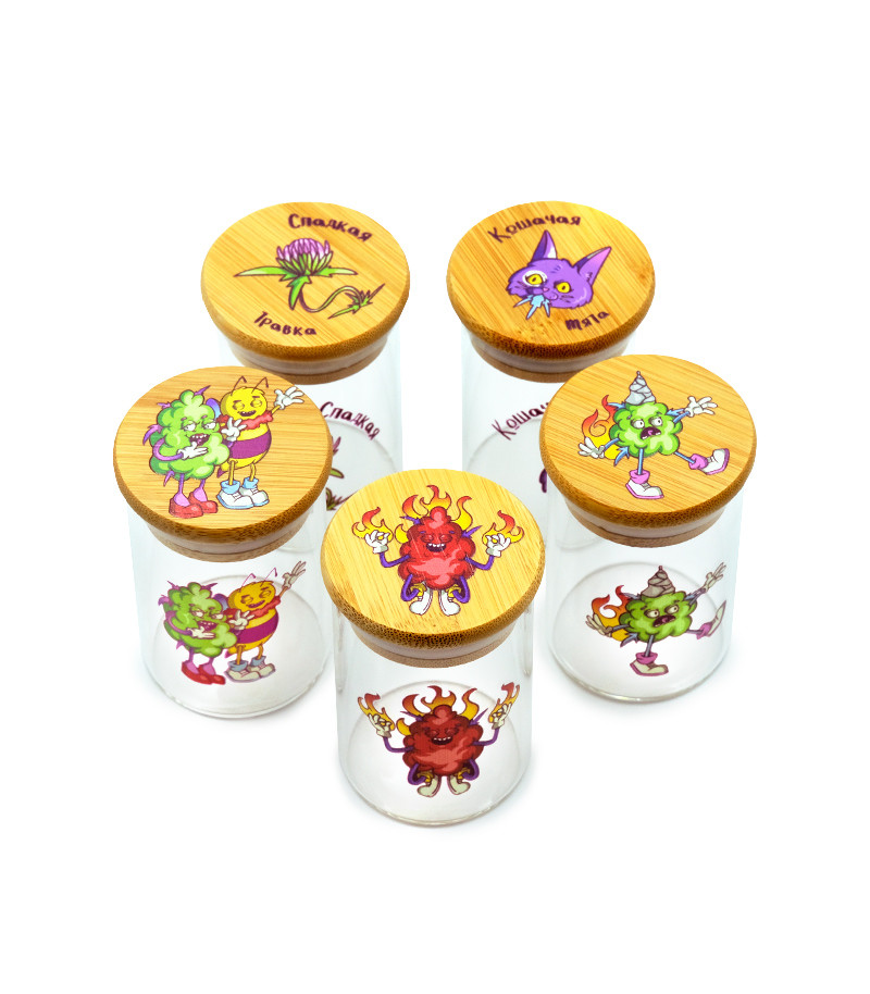Баночка герметичная с принтом 7CH малая придётся как нельзя кстати для хранения небольшого количества шишек. Заприметили самый красивый бутон на кусте? Почему бы не выделить ему особое место. Баночка изготовлена из прочного стекла, а крышка – из бамбука. Ёмкость герметична и не пропускает запах.