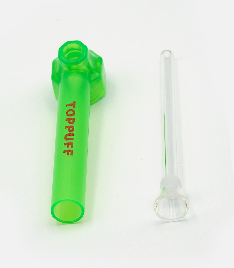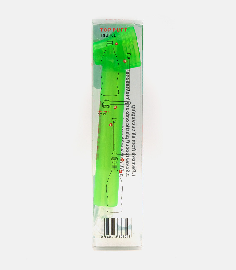 Использовать трубку для бутылки Top Puff предельно просто. Достаточно набрать в бутылку воды, накрутить верхнюю насадку-мундштук и вставить в нее стеклянную трубку. Воды должно быть столько, чтобы нижняя часть стеклянной трубки была в нее погружена. Девайс удобен в использовании и за счет водного охлаждения позволяет сполна насладиться вкусом и ароматом растительного продукта.