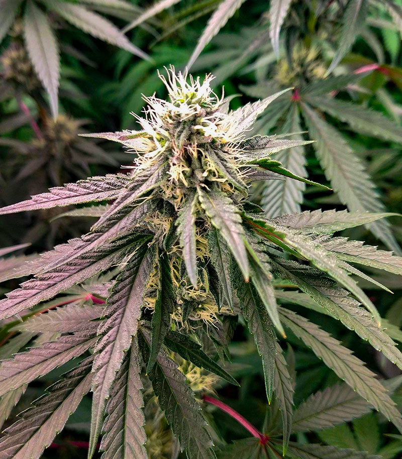 Нельзя забывать и о визуальной составляющей сорта. Как только температура опускается на пару градусов ниже нормы, листва и чашечки конопли мигом окрашиваются в волнительную пурпурно-фиолетовую гамму, непременно приковывающую к себе восхищенные взгляды. При этом количество готового продукта может достигать 1450-1550 граммов с одного-единственного куста. А таким цифрам будет рад даже требовательный коммерческий фермер.
