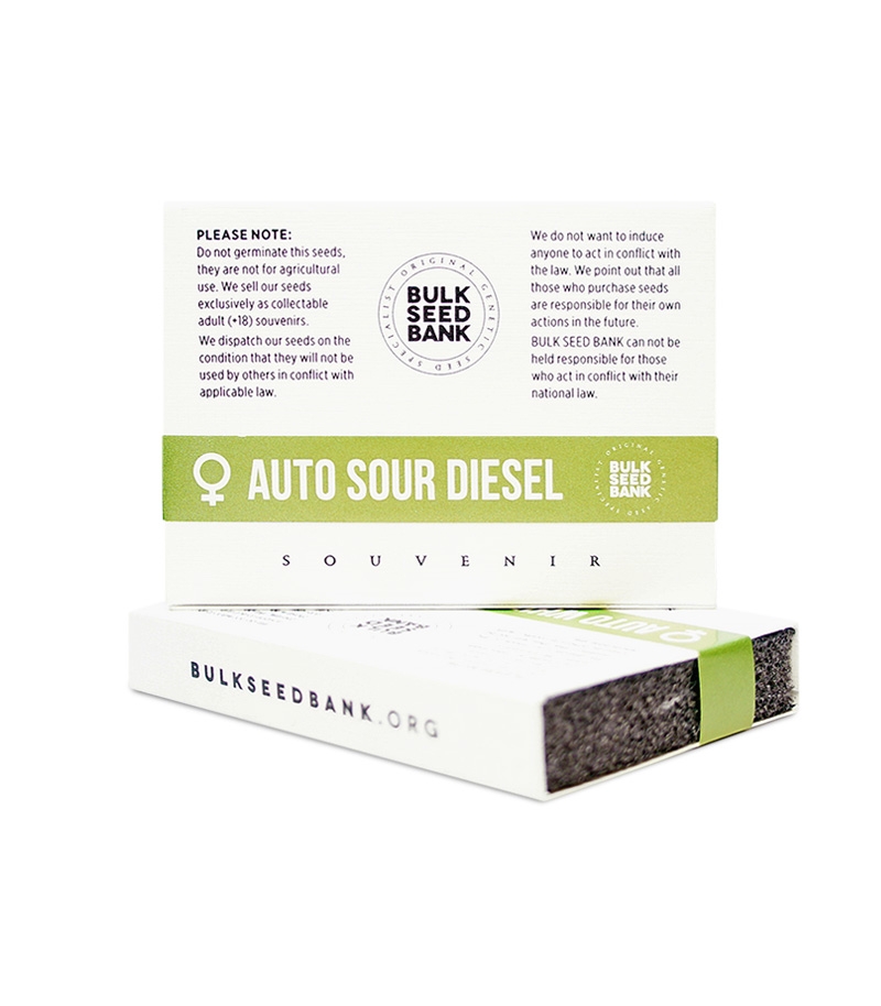 Селекционеры сид-банка Bulk Seed Bank получили феминизированный сорт марихуаны Auto Sour Diesel путем скрещивания популярных Sour Diesel и Lowryder2. От своих родителей представленный гибрид унаследовал приятный аромат и большой размер шишек, которые после десяти недель будут радовать гроверов своей маслянистостью и приятным насыщенным запахом. Коноплеводы отметят высокую продуктивность Auto Sour Diesel при минимальном уходе.