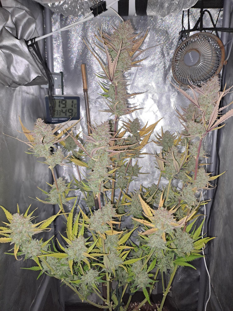 Я определенно собираюсь снова вырастить этот сорт. Он разросся и работал бы намного лучше, если бы у меня не было нескольких проблем, на решение которых мне потребовалось некоторое время. У нее фиолетовые бутоны, но на этом фенотипе сохранились зеленые листья. Я собрала 28,21 унции влажного урожая, отрезав большую часть листьев. Я обновлю, как только он будет вылечен и его можно будет курить. Не могу дождаться!