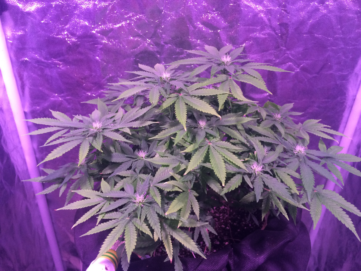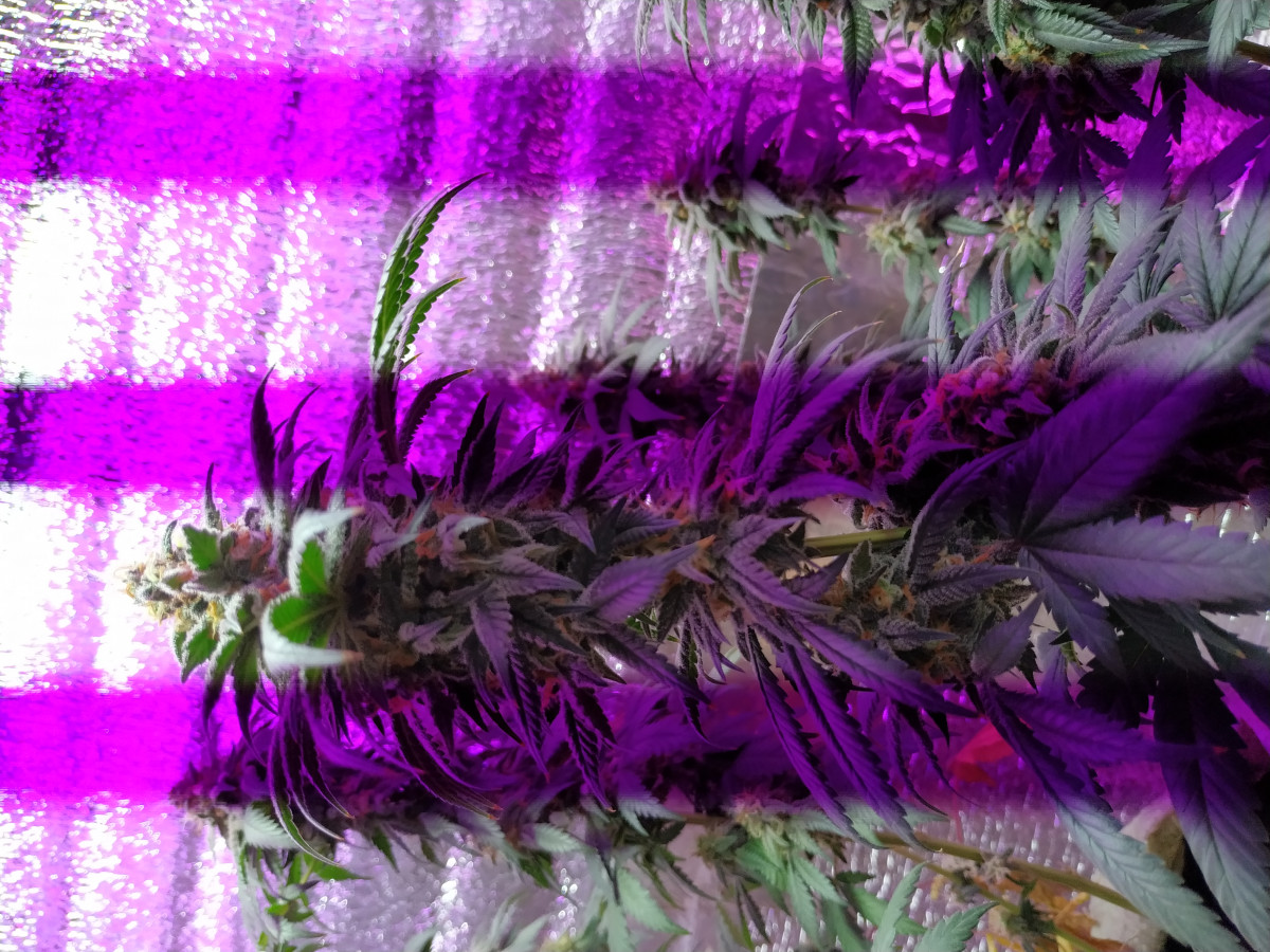 Очень сильно может терпеть все! Две недели цвета на фото. Резал листву каждый день, а он не огермился, разве что тормознул в росте, но надо было вегу ещё подержать пару недель, чтобы оклемался. Гроубег 10л, земля - вторичный биобизз алл микс, свет - днат 150+250, 20w биколор. Кормлю ГХЕ трехкомпонентной обычной. Потенциал прекрасный, дать на куст хотяб 120ватт квантум брида и удобры, например адвансы или плантаторс- будет здоровенная мощная индика со стеблем как у наших чёрных братьев))) снять 3г/ватт будет Вполне реально! Семяныч как всегда радует интересными релизами! Да, бокс 60х60