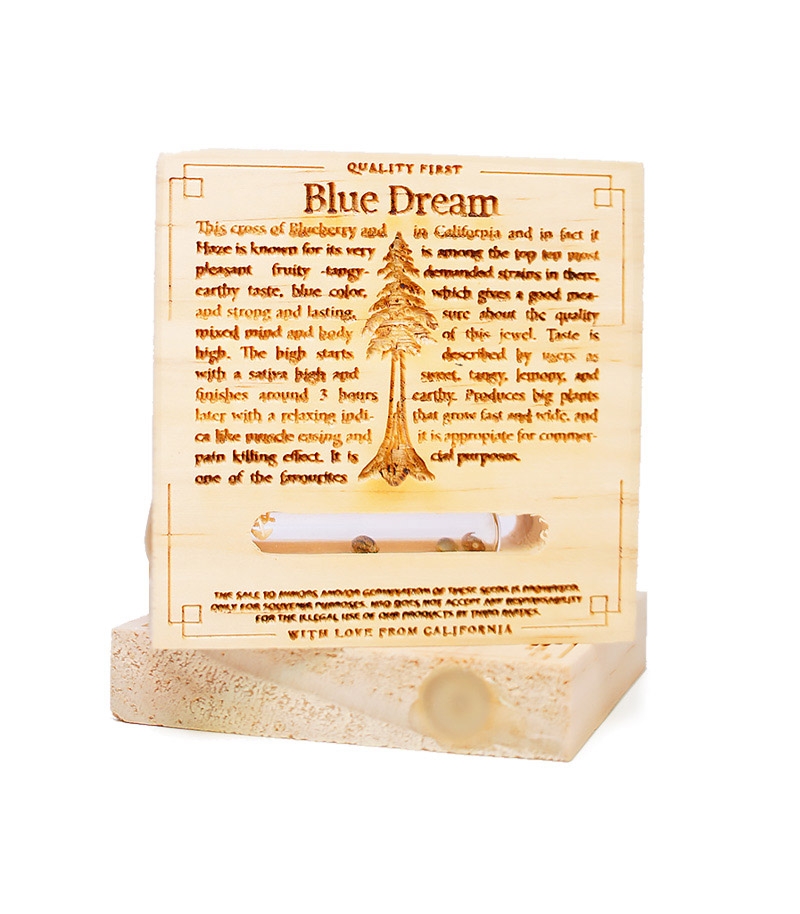 Гибрид марихуаны Blue Dream может похватать очень знатным происхождением, его прямыми родителями являются выдающийся Blueberry и отборный Haze. Унаследовав многие качества у предков, получившийся гибрид представляет собой растение источающее энергию, которое плодоносит крупными шишками, окутанными нежным ароматом. Сорт очень высоко оценивается гроверами, в частности не перестают нахваливать его производительность. Помимо этого растишка очень жизнестойкая и энергичная, постепенно превращается в высокое и статное растение, с грациозными длинными ветвями и красивым голубым оттенком. В аутдоре предпочитает сухой, теплый, умеренный и средиземноморский климат. Но и при закрытом грунте растишка удивит количеством произведенной смолы.
