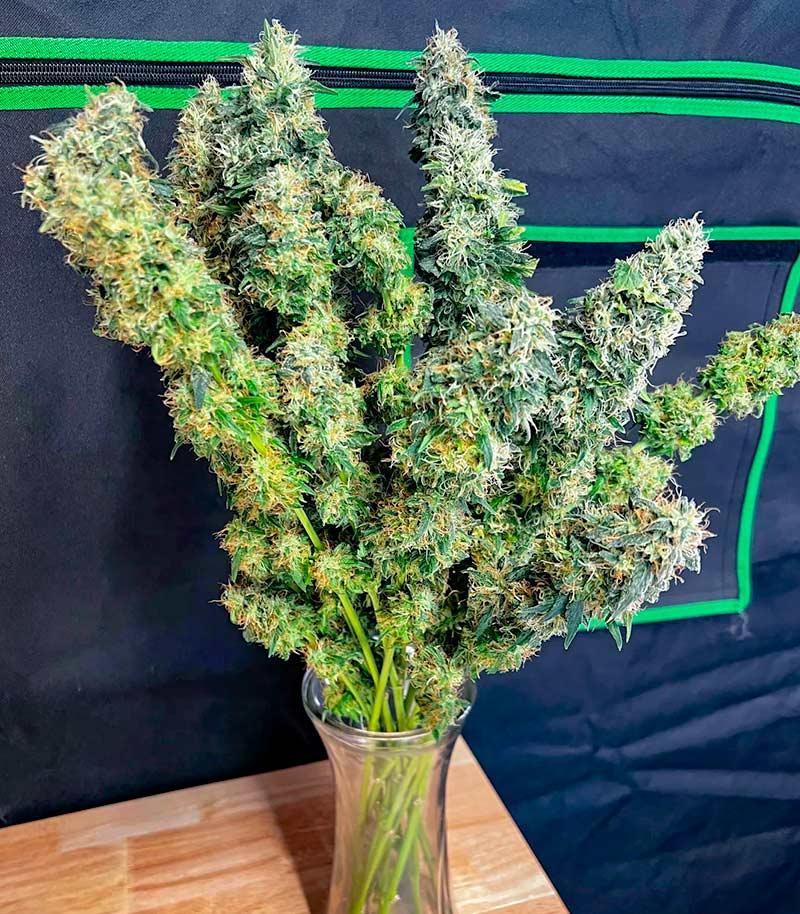 Это первоклассный скоростной гибрид, входящий в список самых мощных представителей канна-мира на сегодняшний день. Далеко не каждый сорт может похвастаться содержанием ТГК в 29%, а быстрорастущая версия Bruce Banner еще и цветет всего 49-56 дней. Эффект эйфорический, с мягким расслаблением.